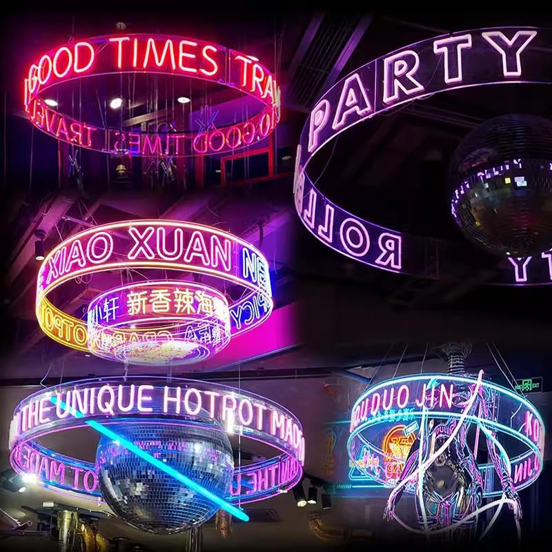 Kotak Lampu Akrylik Bulat Cincin Lampu Neon Bentuk Lingkaran Led Gantung Lampu Suasana Dekorasi Bar Selebriti Internet