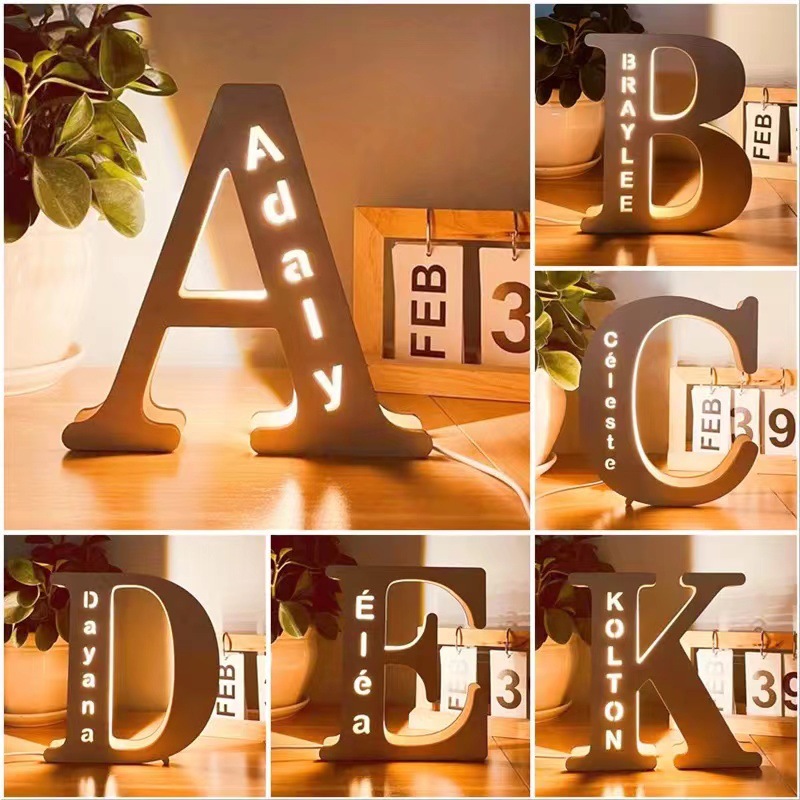 Pabrik Penjualan Langsung Lampu Hiasan Dinding Model Baru Kreatif Kayu LED Gantung Dinding Lampu Atmosfir Lintas Batas Huruf Lampu Kayu