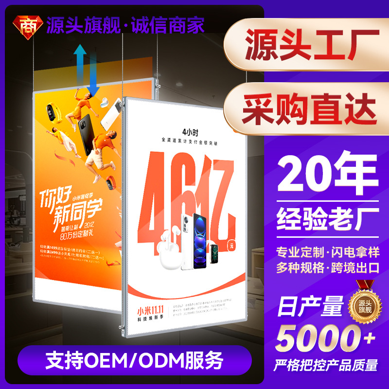 Kotak Lampu Super Tipis Dua Sisi Gantung Gantung Kaca Gantung Dalam Ruangan Papan Tampilan Menu Iklan Bercahaya LED