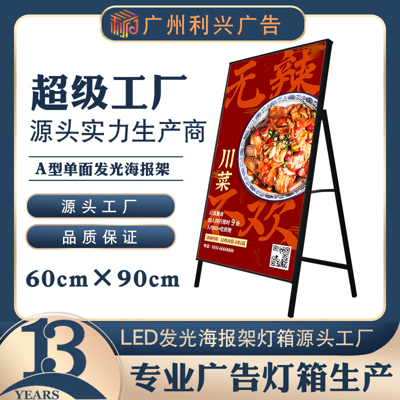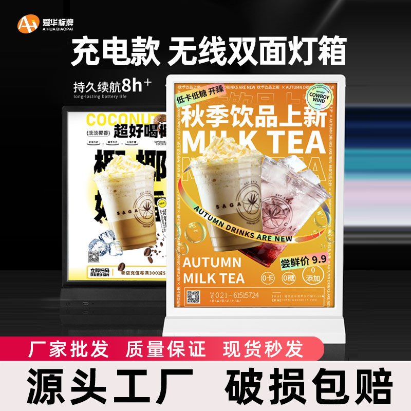 Berdiri poster bercahaya satu sisi disesuaikan toko teh susu lembut film led vertikal lantai kotak papan reklame tanda tampilan