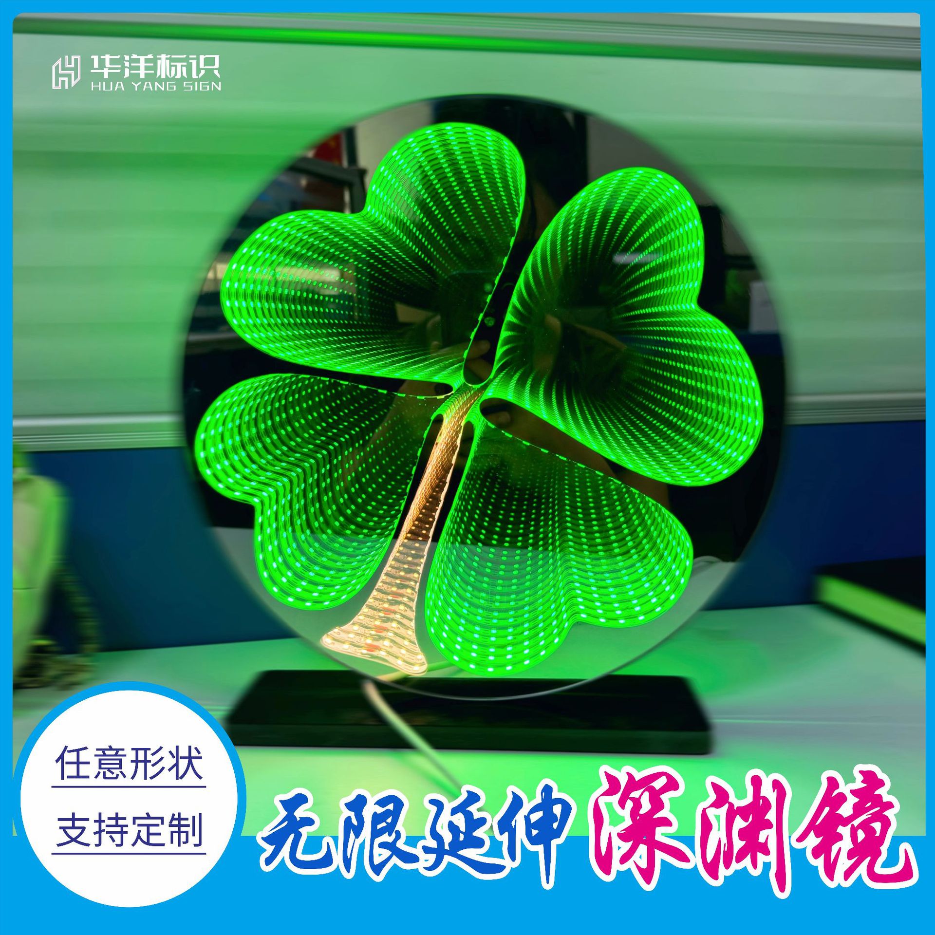 Dekorasi lampu malam ruang kreatif LED bercahaya semanggi empat daun cermin abyss terowongan tak terbatas