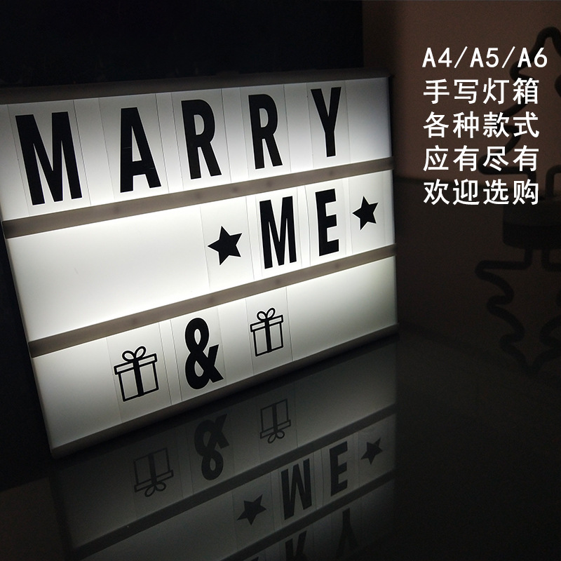 Kotak lampu LED huruf, kotak lampu A4 tipe Q kotak lampu tulisan tangan ins kotak pengakuan puzzle warna hitam dan putih kombinasi DIY