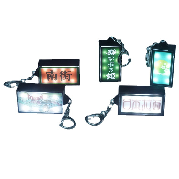 Baru LED neon kotak cahaya kecil liontin gantungan kunci luar ruangan iklan portabel pola desain ornamen bercahaya
