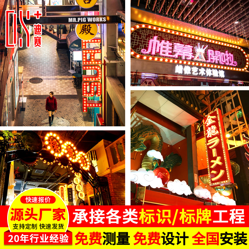 Papan Nama pintu luar ruangan bohlam besar kata berkarat retro led kotak cahaya bercahaya huruf lantai tiga dimensi