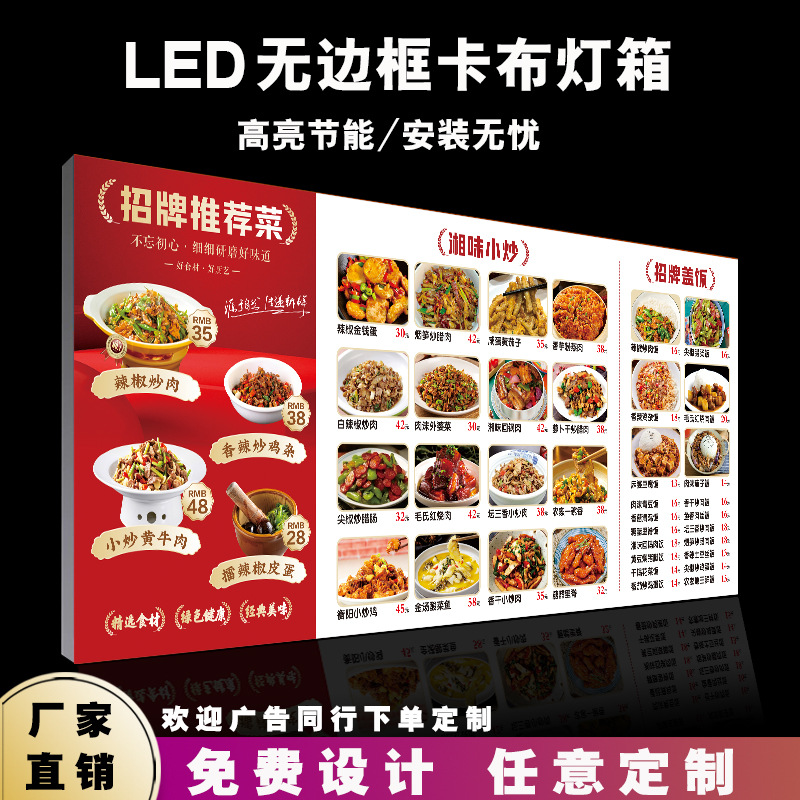 Merek tampilan menu toko mie film lunak bercahaya desain menu dinding gantung LED daftar harga makanan definisi tinggi billboard
