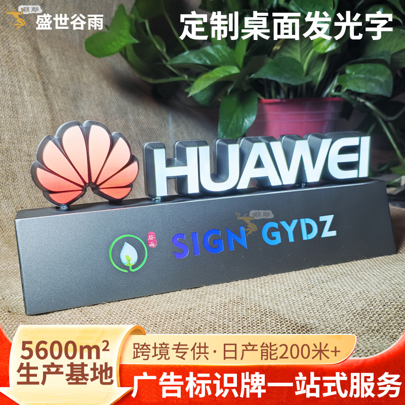 Perusahaan Booth Konter Display Desktop LED Tampilan Kartu Meja Kata Cahaya Kustom Pengisian Nirkabel Dua Sisi yang Dapat Dipindahkan