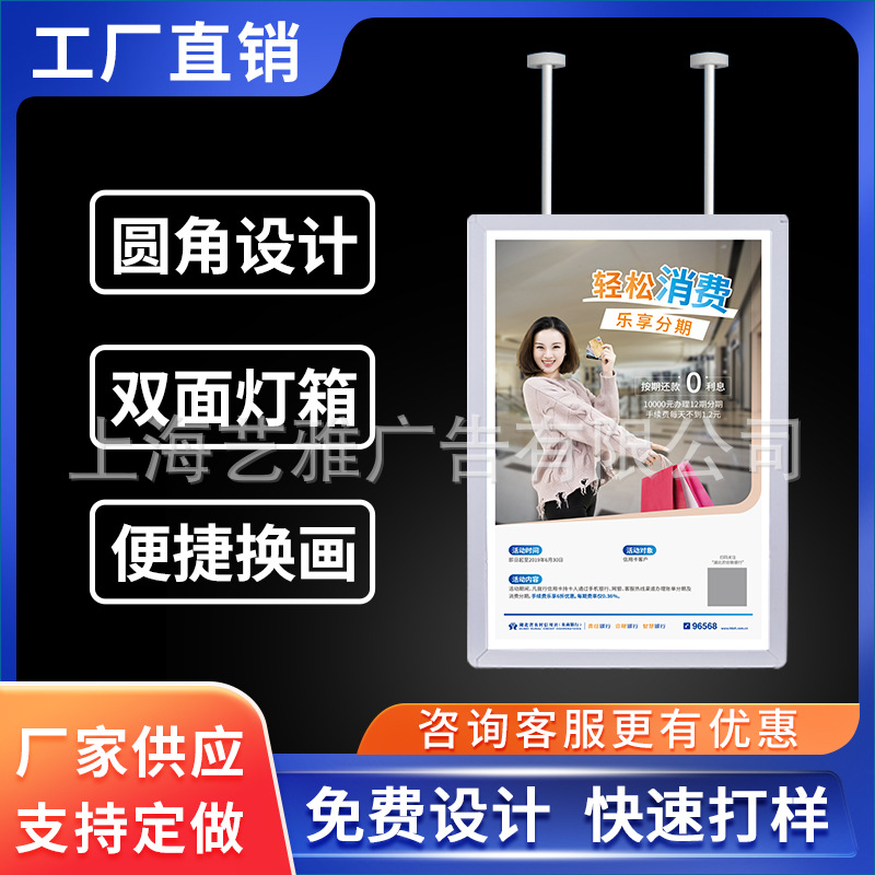 Bank bulat sudut dua sisi ultra-tipis kotak cahaya gantung Bank Pertanian pos jendela gantung led kotak papan reklame bingkai poster
