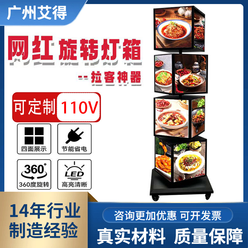 Kotak lampu putar vertikal, papan reklame LED berdiri di lantai, papan tampilan menu bergerak, rambu penarik perhatian lalu lintas luar ruangan.