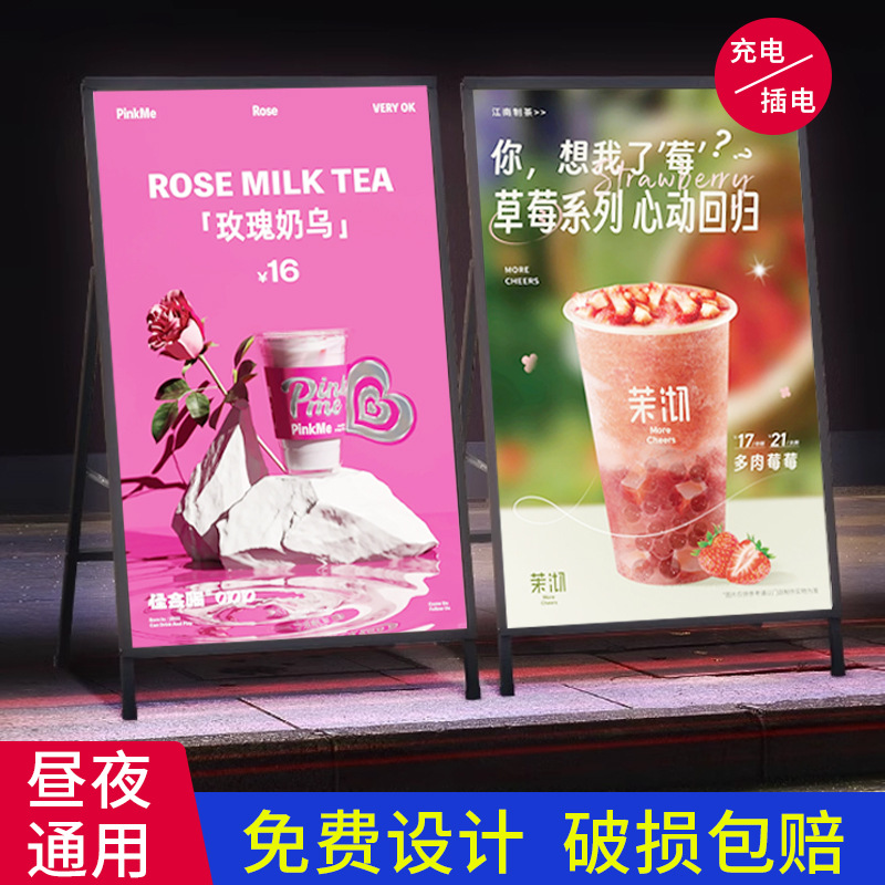 Papan reklame lampu ultra-tipis layar led bercahaya papan reklame untuk dinding dengan pengisap magnetis sudut kanan untuk toko teh susu