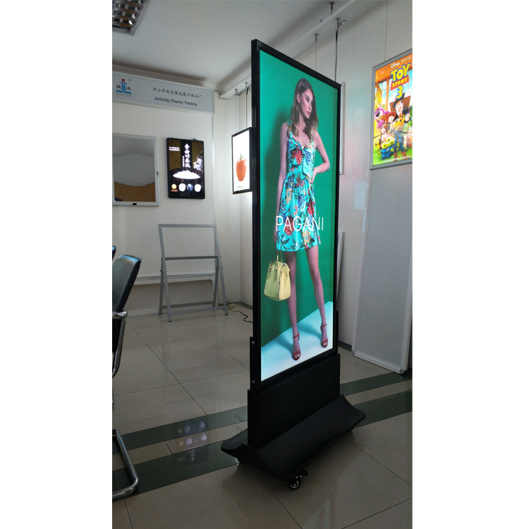 Kotak lampu vertikal aluminium Aloi, kotak lampu iklan led dua sisi dapat digerakkan vertikal dengan roda