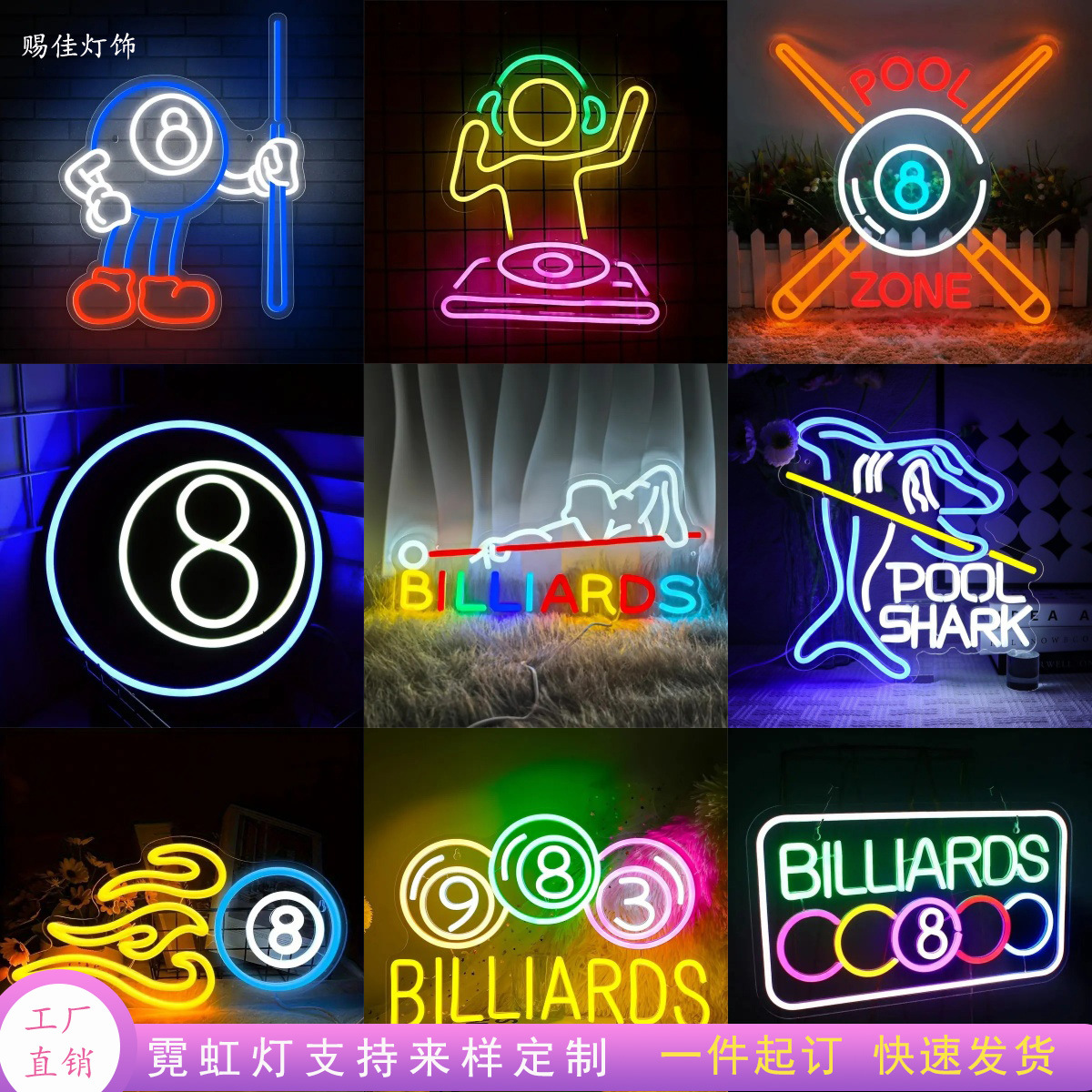 Dekorasi Lampu Neon LED Ruang Biliar Bar Pasar Malam Video Game KTV Selebriti Internet Karakter Bercahaya Tampilan Dinding Papan Lampu