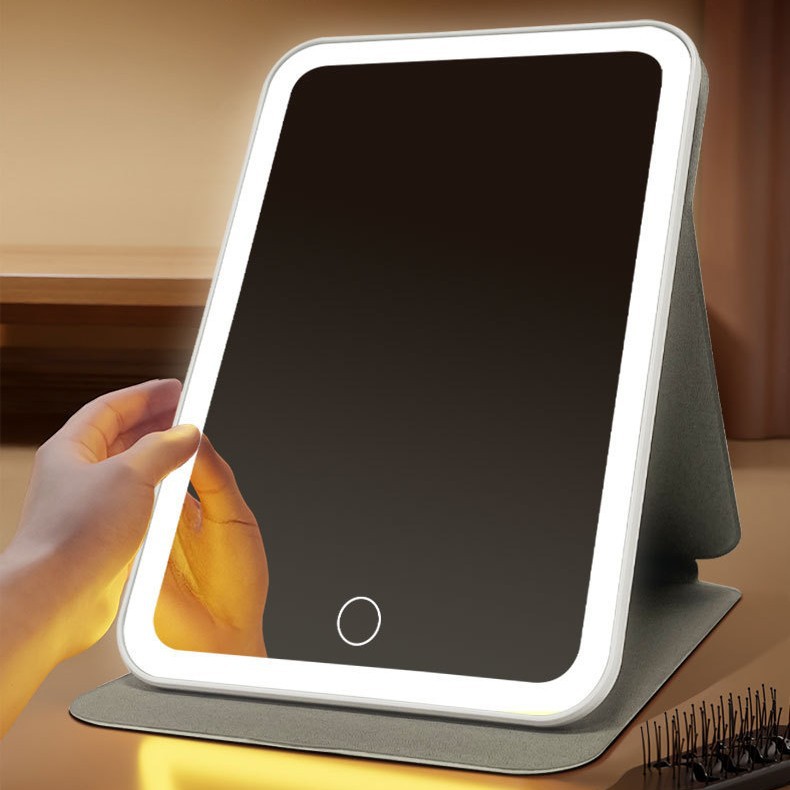 Cermin Rias LED Cermin Persegi Portabel Bisa Dilipat dengan Tas Rias Khusus Cermin Kulit Portabel Cermin Rias Meja