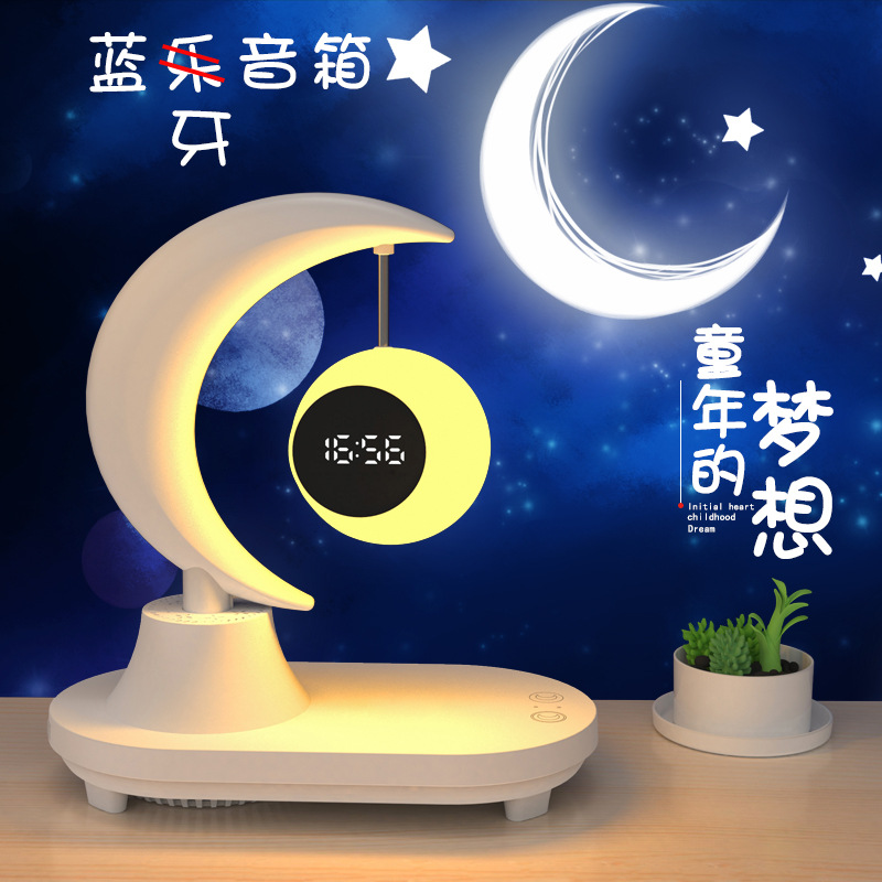 Speaker Bluetooth nirkabel, 15W pengisian cepat nirkabel, lampu depan warna-warni, lampu malam led samping tempat tidur, lampu meja alarm anak-anak