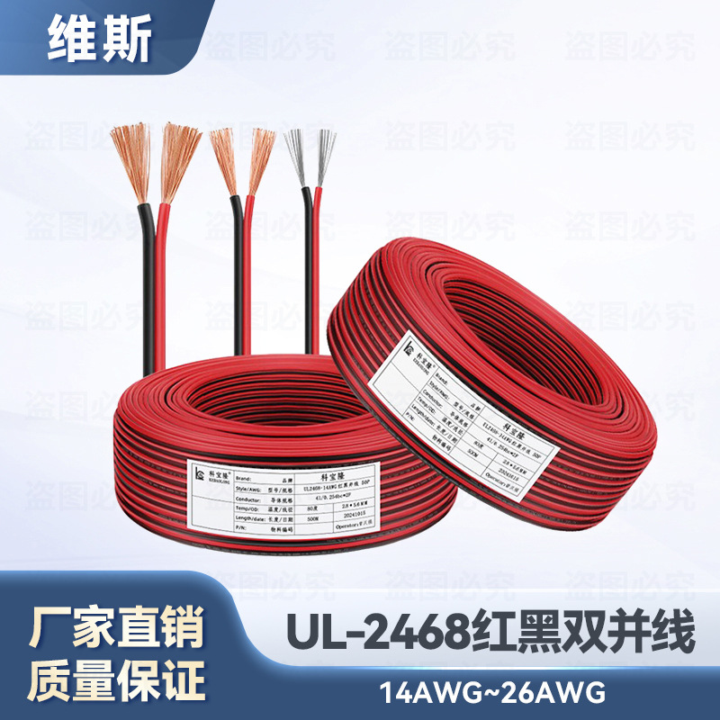 Grosir Standar UL2468 Kotak Iklan Kabel Merah dan Hitam Ganda Kabel Elektronik LED Strip Lampu Paralel Kabel Pemantauan Kabel Listrik