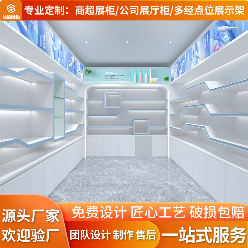 Desain custom-made cat showroom showcase perusahaan kehormatan dinding tinggi lemari kosmetik perusahaan produk showcase