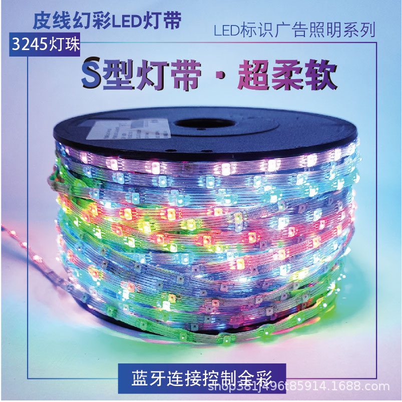 Kabel Kulit Bendera Biru LED Warna Penuh Warna Simfoni Bentuk Lampu Tipe s Luar Ruangan Tahan Air RGB Warna Seribu Warna Kata Kontrol Bluetooth