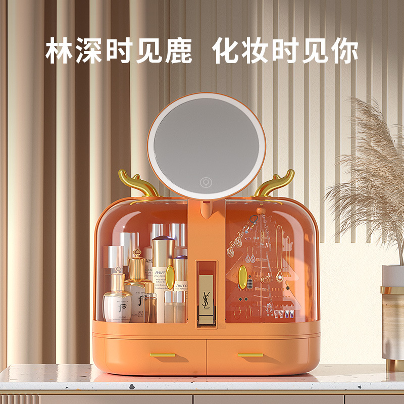Kotak Penyimpanan Kosmetik Bertali Cermin Rias LED Model Baru Kotak Penyimpanan Kosmetik Berlapis Transparan Kotak Penyimpanan Kosmetik