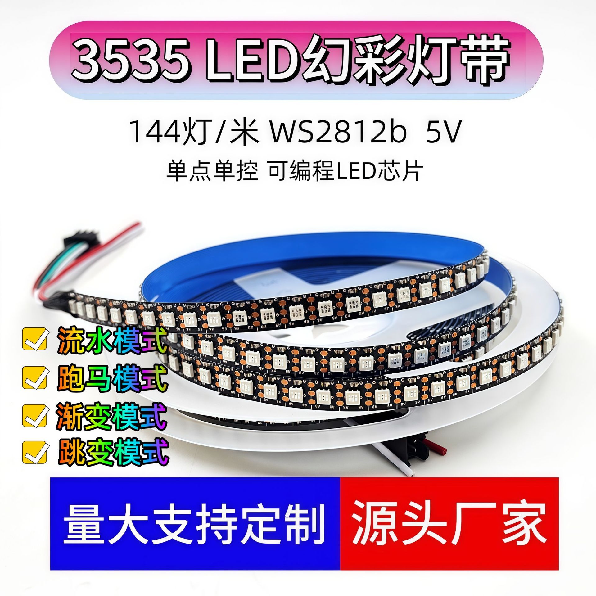WS2812B144 Lampu Kuda Balap Lampu Aliran Fantasi Warna Dengan 5050 Built-In IC Dapat Diprogram Penuh Warna Lampu Lembut Strip 5V