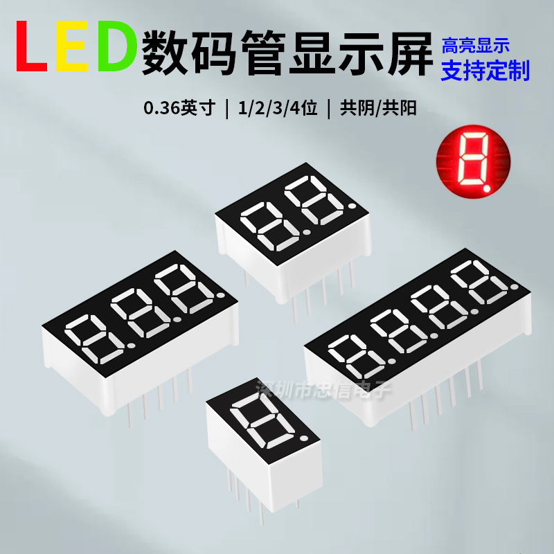 LED tabung tampilan digital 7 segmen, tabung tampilan digital jam 0.56 inci 1/2/3/4-bit co-yin/co-yang