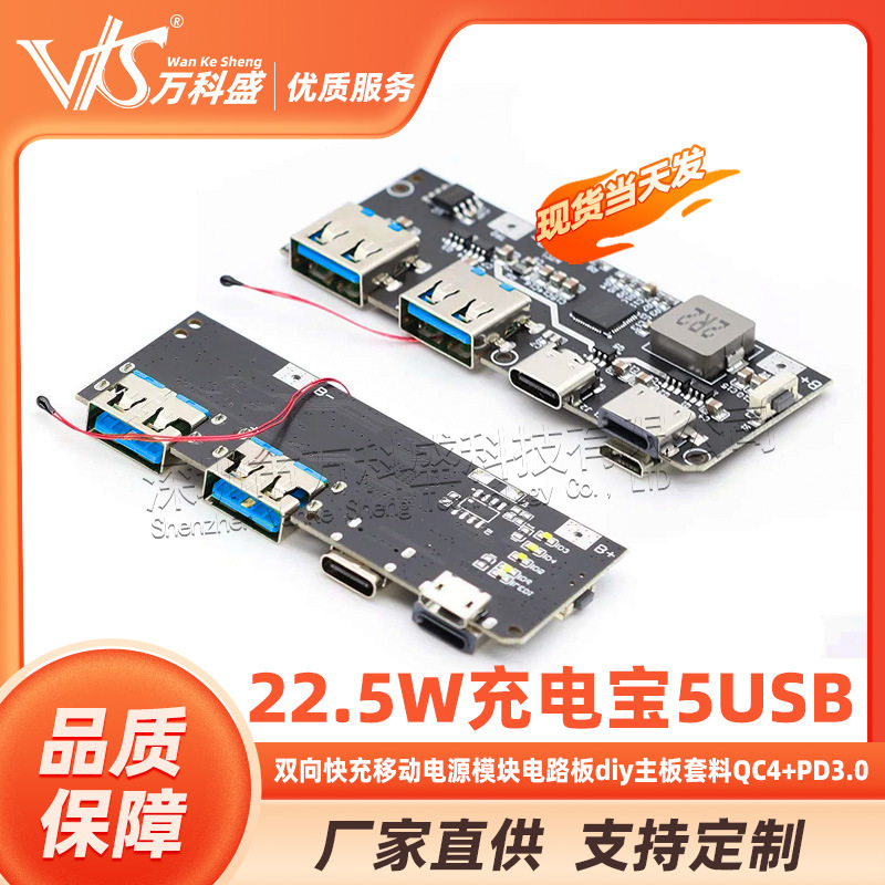 Power bank 22.5W 5-Port pengisian cepat dua arah papan sirkuit modul daya seluler motherboard diy bersarang QC4 + PD3.0