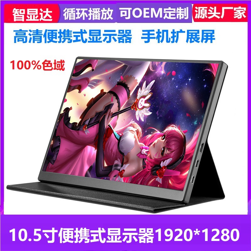 Zhixianda monitor portabel HD 10.5 inci, antarmuka tipe-c/HDMI 10 inci 1920*1280