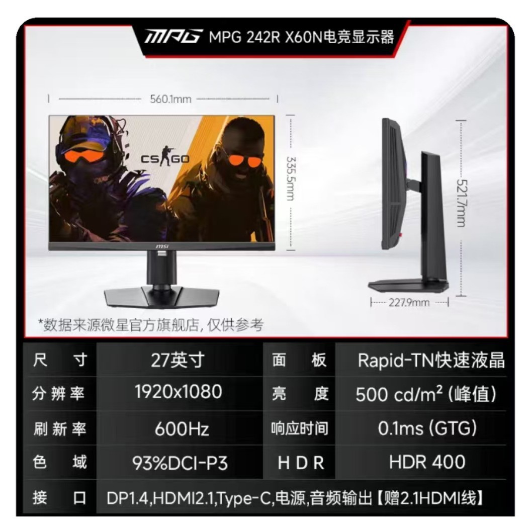 MPG 242R X60N 24 inci 1 k600Hz 0,1 ms Tipe-c 98w layar LCD