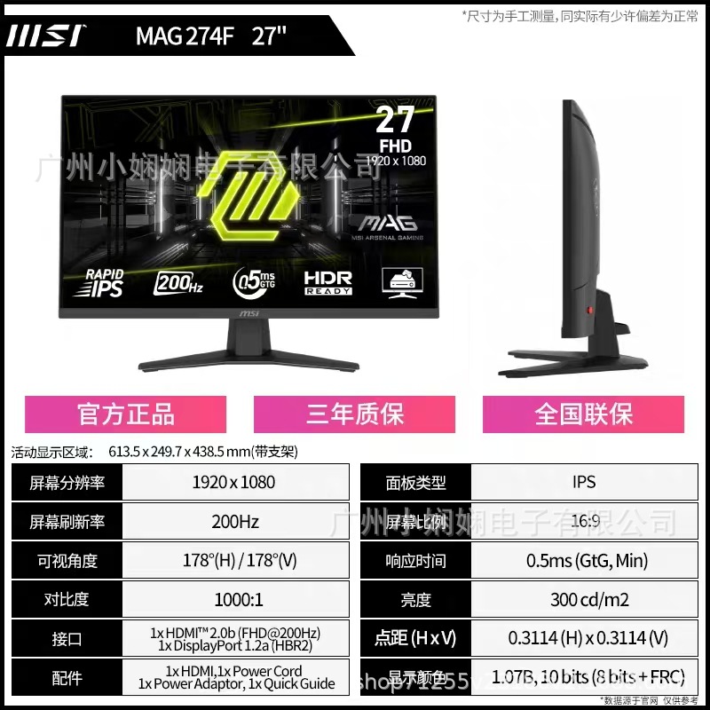 MAG 274F 27 Inch 1K 200Hz Layar Kuas Tinggi 0.5ms Komputer Kantor Komersial Layar Tampilan