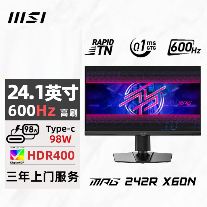 MPG 242R X60N 24 inci 1 k600Hz 0,1 ms Tipe-c 98w layar LCD