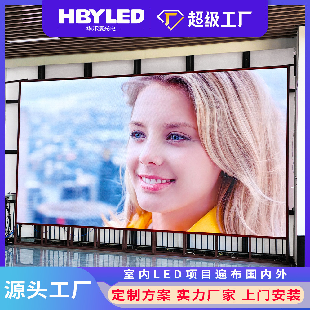 Layar LED dalam ruangan, pasokan langsung dari produsen Shenzhen, full-color definisi tinggi, cocok untuk hotel, konferensi, panggung, dan ruang siaran langsung.