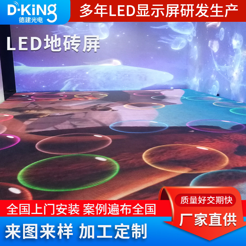 Model pribadi kerajinan Interaktif LED ubin lantai tampilan layar LED lantai bantalan kapasitas hingga 2 ton