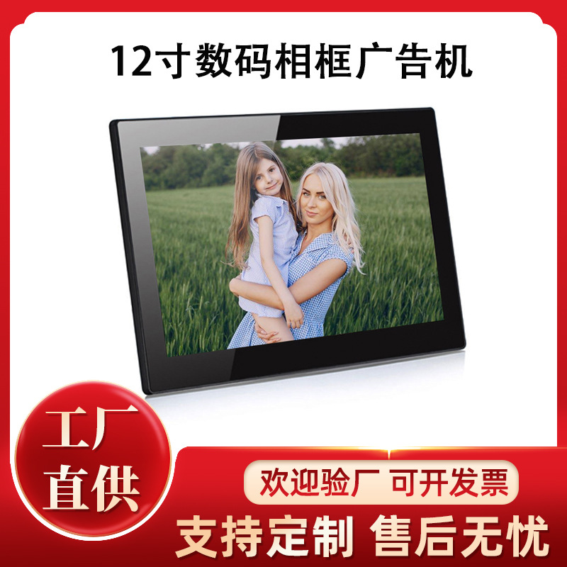 Produsen sumber bingkai foto digital 12 inci mesin iklan album foto elektronik LED hadiah perusahaan bank lift pemesanan