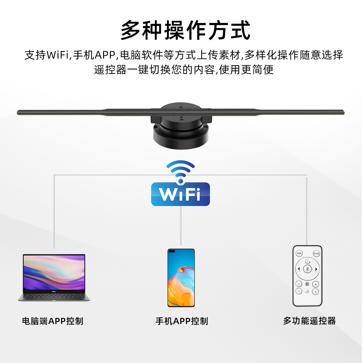 Layar kipas 3D, proyektor Wifi holografik pemutar led stereo jarak jauh suspensi tampilan 3D mesin iklan holografik