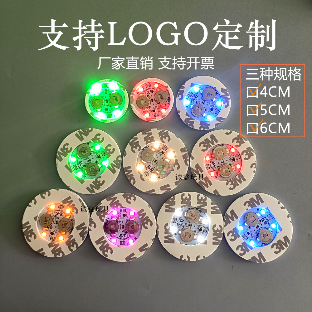 Stiker botol bercahaya LED tahan air grosir coaster bulat EVA lampu berkedip dasar botol anggur stiker bawah LOGO dapat dicetak