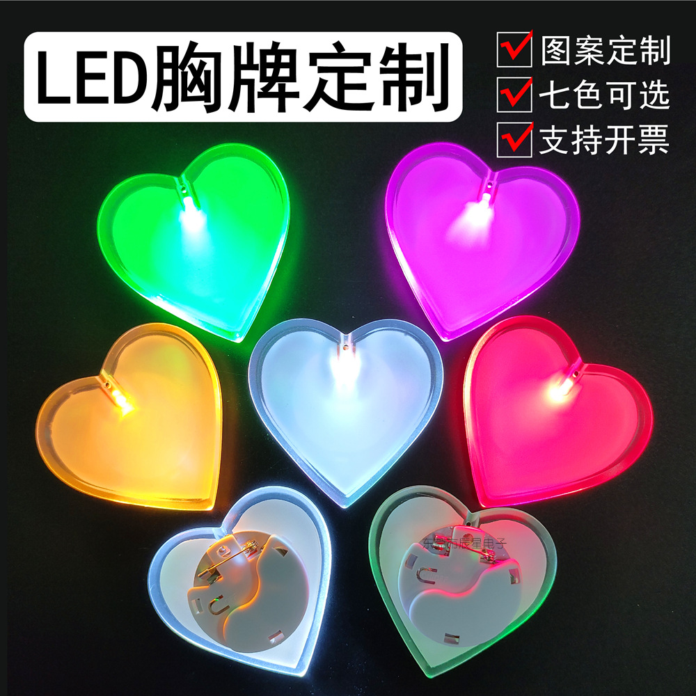 Custom Glowing Glowing Bros LED Love Heart Glowing Bros Konser Acara Olahraga Hadiah Dada Glitter