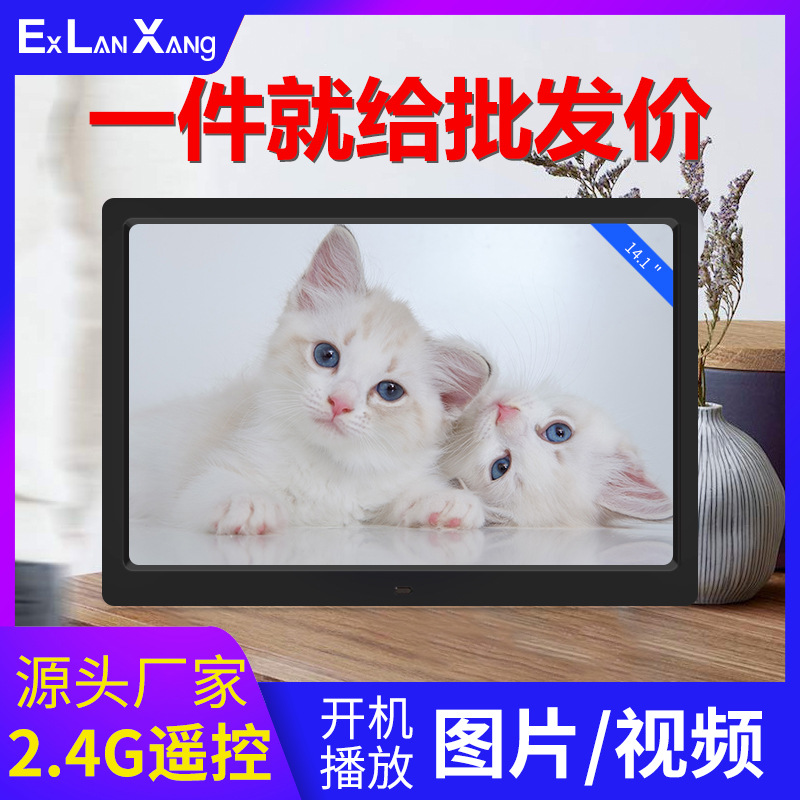 Bingkai foto digital 14 inci 2.4G, pemutar foto elektronik bingkai tipis sempit layar lebar LED video 14.1 inci