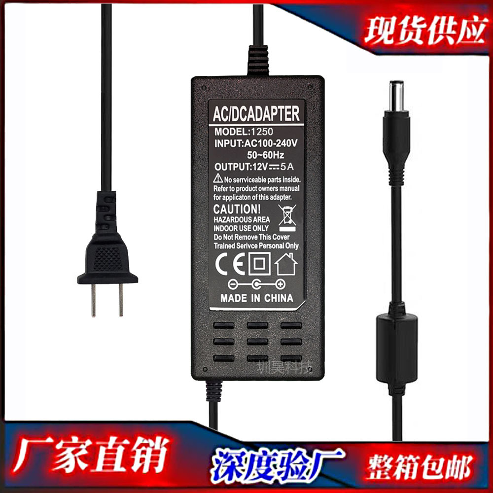 12V5A adaptor daya pemantauan iklan mesin lampu LED dengan pengisi daya 12V60W standar Amerika suplai daya desktop