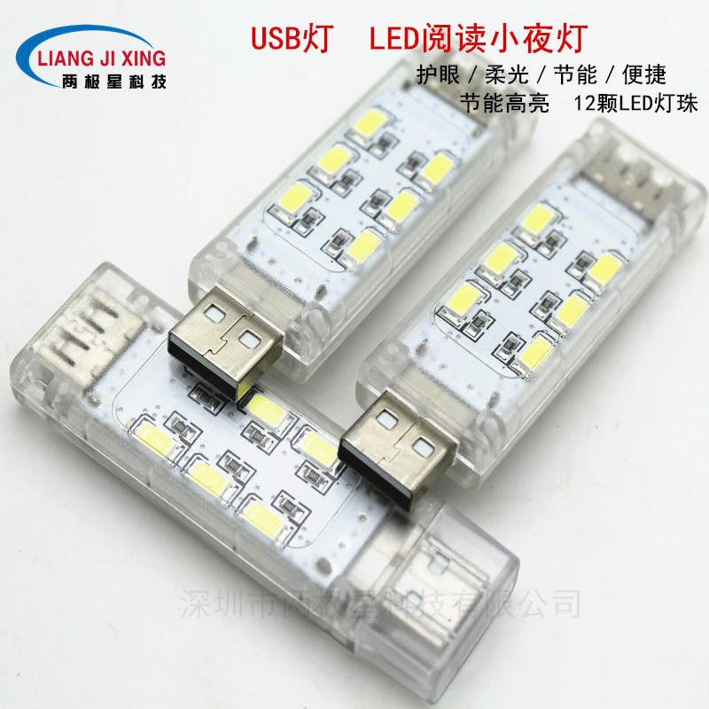 Lampu malam LED USB kekuatan ponsel, lampu malam USB portabel dua sisi bercahaya terang putih hangat