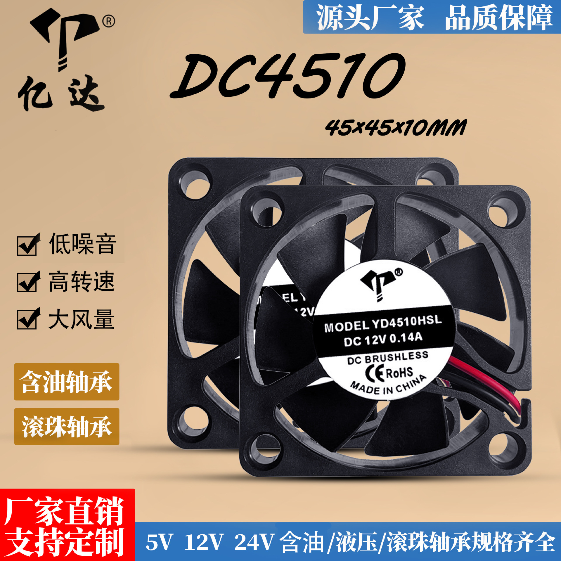 Penjualan langsung dari pabrik 4510 kipas pendingin DC 12V DC/24V Inverter kartu grafis CPU 4.5cm