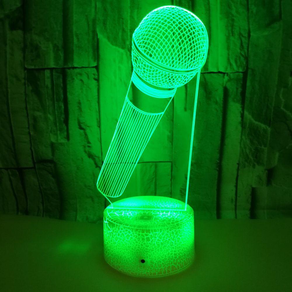 Mikrofon visual warna-warni 3D, lampu ilusi LED kontrol jarak jauh, lampu meja kecil kreatif 3D hadiah 2024
