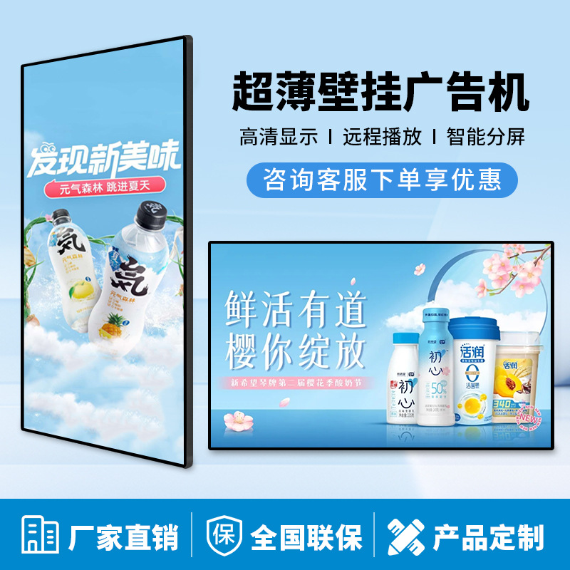 Mesin iklan yang dipasang di dinding cocok untuk tampilan iklan pameran mal layar besar layar terbagi cerdas resolusi HD