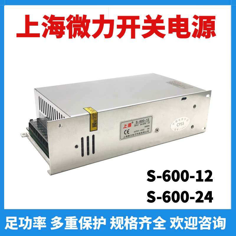 Shanghai S-600-12-24 catu daya mikro-daya pengubah sumber kotak lampu iklan pemantauan industri strip lampu LED