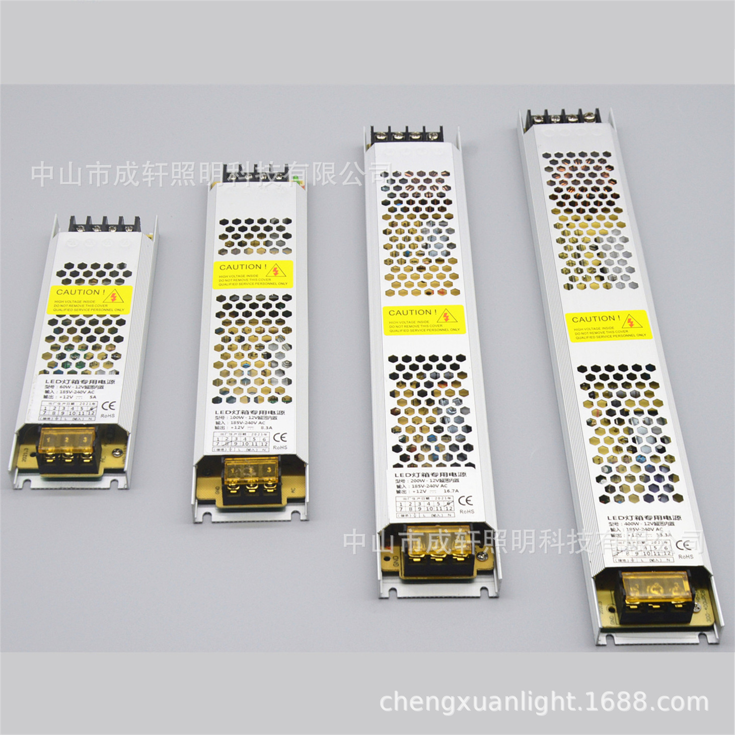 Kotak lampu catu daya ultra-tipis 12v24vled voltase rendah bawaan 100W strip cahaya 200W sakelar iklan transformer konstan