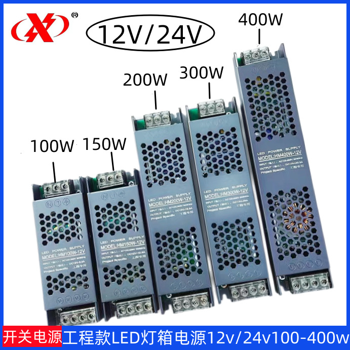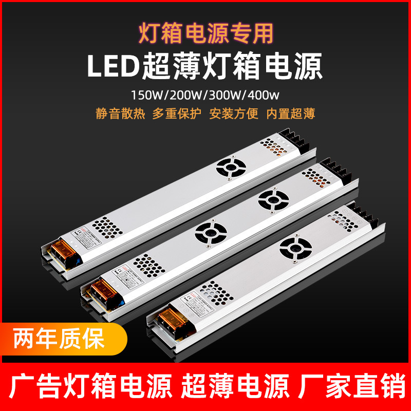 Kotak lampu led ultra-tipis 12V, catu daya khusus 400W garis khaki iklan 24V transformator A bawaan 300W