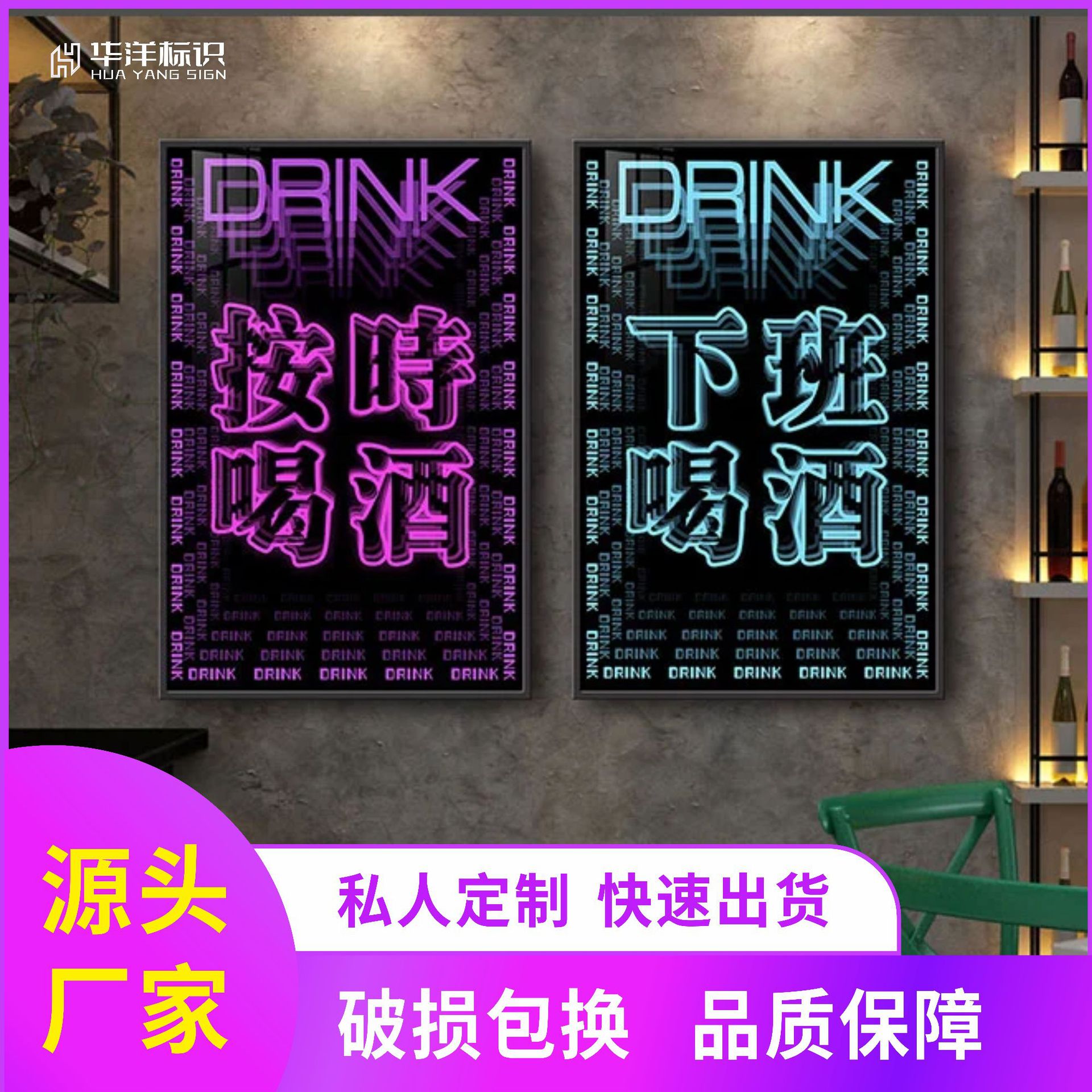 Butik Hong Kong LOGO gambar perusahaan baja tahan karat gaya Hong Kong produksi dinding titanium tiga dimensi LED kata cat dua sisi