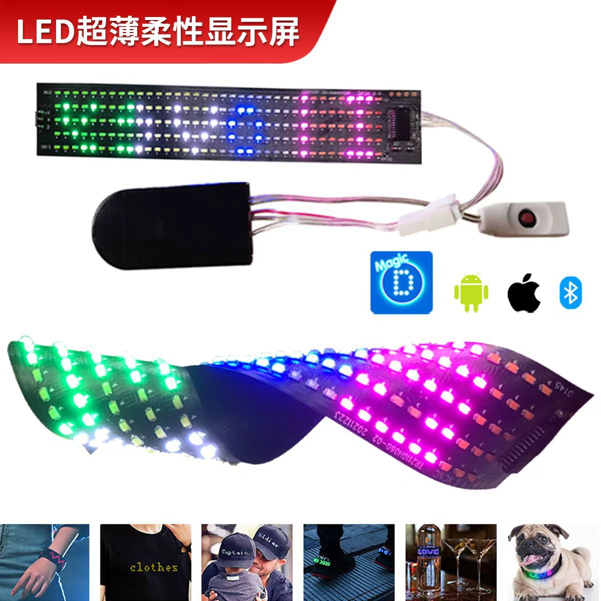 Layar iklan tas dot matriks, 5*36 HD pixel LED fleksibel tampilan aplikasi Bluetooth kata rol sepatu dan topi