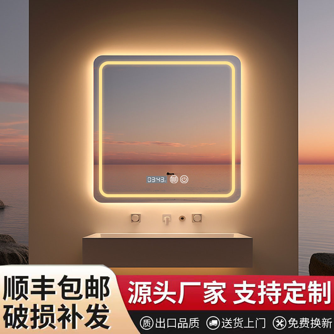 Cermin LED pintar, cermin kamar mandi terintegrasi, saklar daya LED pintar, cermin kosmetik, sakelar sentuh, tampilan time temperatur