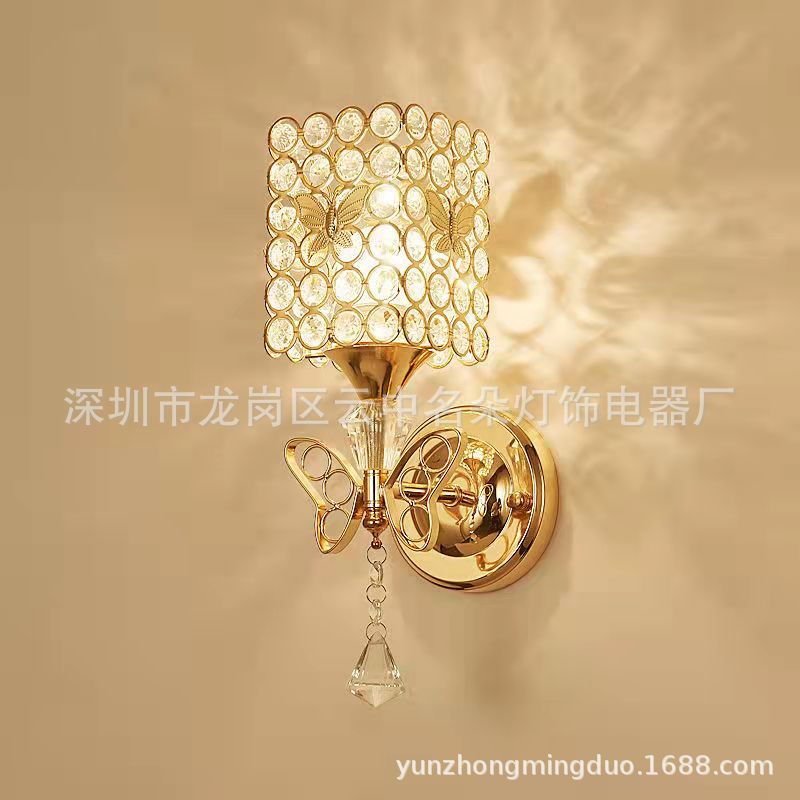 Lampu dinding kristal gaya Eropa, lampu dinding kristal ruang tamu lorong seni dekoratif lampu dinding TV pasokan lintas batas lampu dinding siku besi