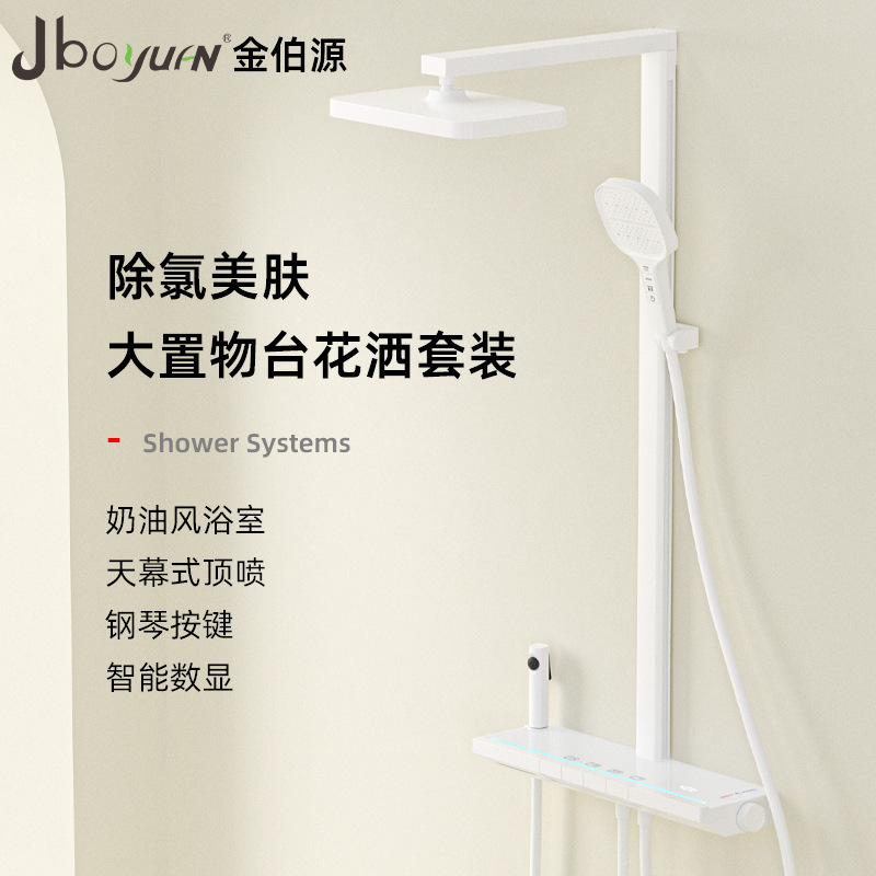Jas mandi besar gaya krim, KAMAR MANDI pancuran air bertekanan tinggi, lampu tabung persegi, tampilan digital mewah, suhu konstan, Penyimpanan besar tembaga
