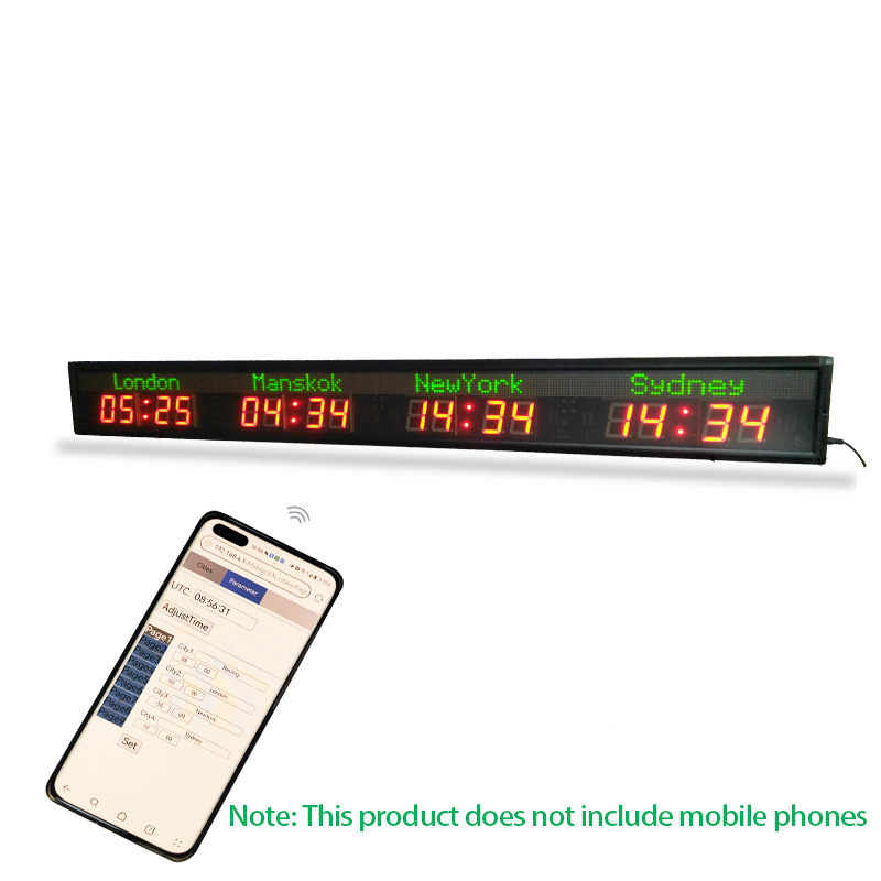 Jam dinding Led, layar LED dinding dalam ruangan remote control waktu dunia dan tanggal 2.3 inci