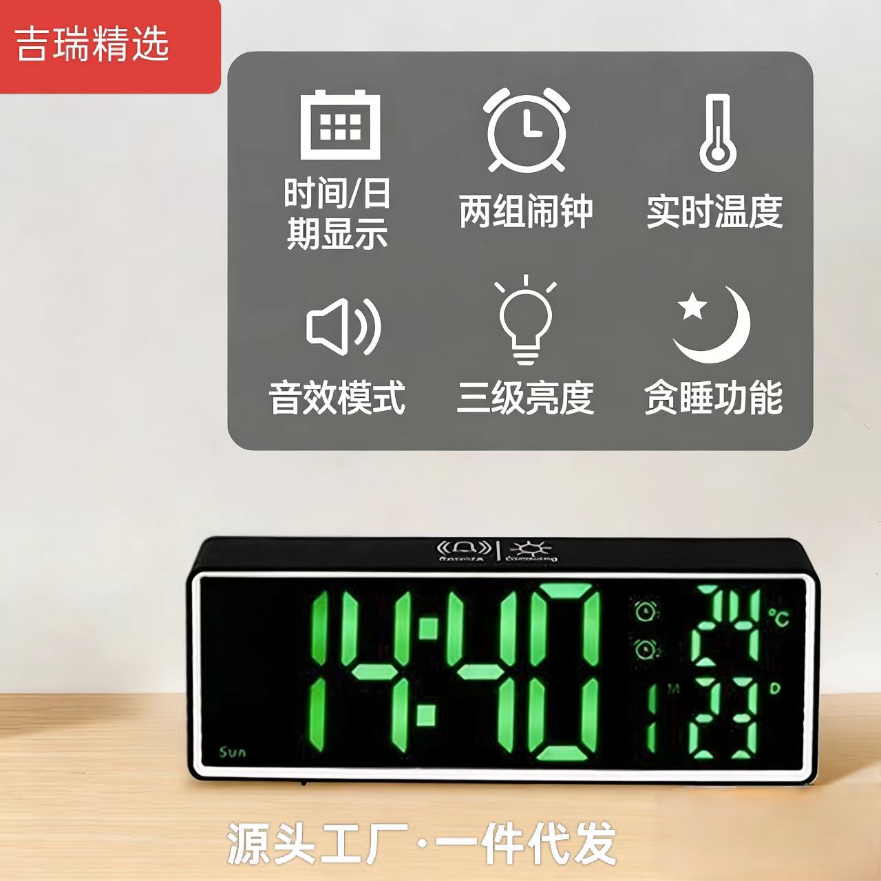 Penjualan langsung dari pabrik 2024 jam alarm elektronik baru mode malam dapat disesuaikan deteksi waktu nyata suhu dalam ruangan grosir